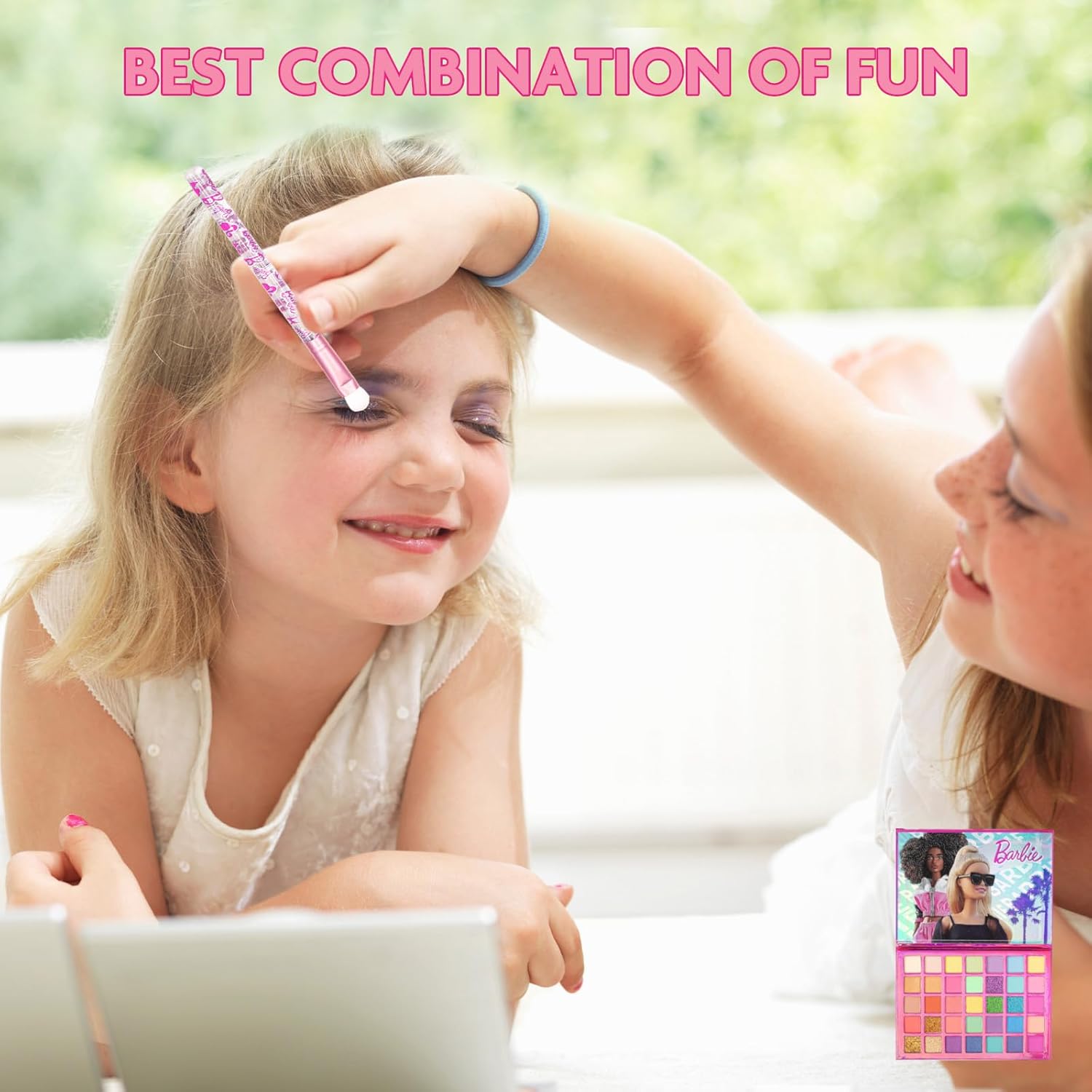 ظلال عيون براقة لا حصر لها! ستعشق صغيرتكِ باربي هذه الباليت الرائعة لظلال العيون من باربي، والتي تضم 35 لونًا مع فرش تطبيق متعددة. مع هذا التنوع الكبير في الألوان واللمسات النهائية، ستتمتع بإمكانيات لا تنتهي لإطلالتها اليومية. والأفضل من ذلك كله، أنها غير سامة، لذا لن يتردد الأهل في ترك صغيراتهم يلعبن بها وكأنهن كبار.