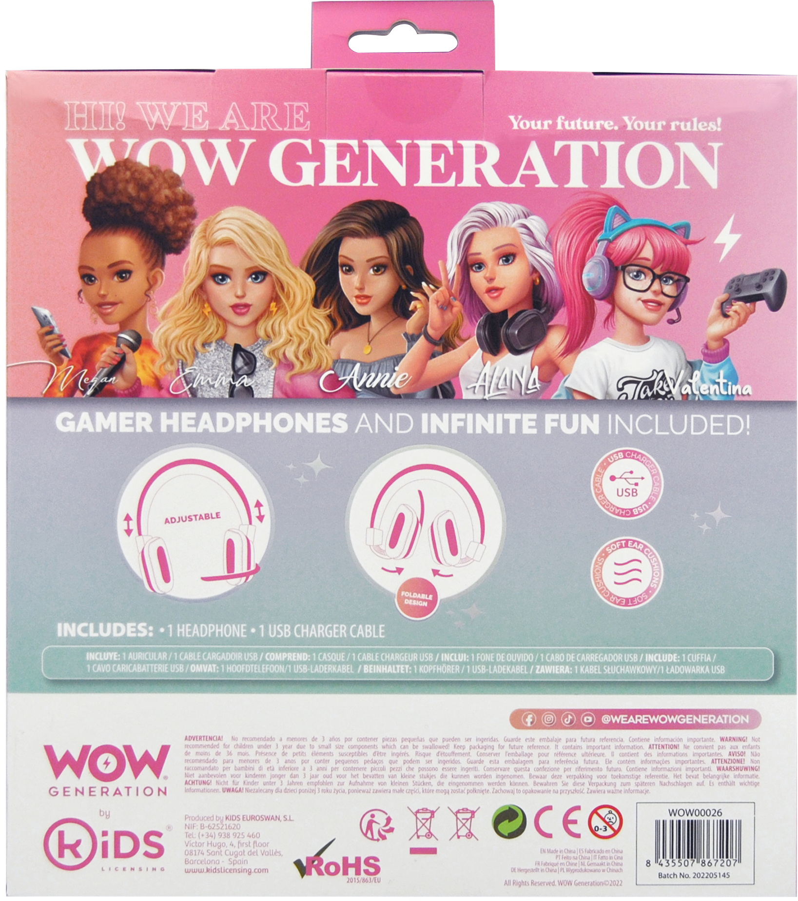 For a total WOW effect, these headphones are the perfect accessory to feel the beat perfectly, as Alana would say. With 5.0 Bluetooth connection, the headphones can be connected to any device to play favourite songs everywhere and everywhere. What's more, with its built-in microphone, the headphone with speaker function allows the girls to do streams and live videos with total comfort.