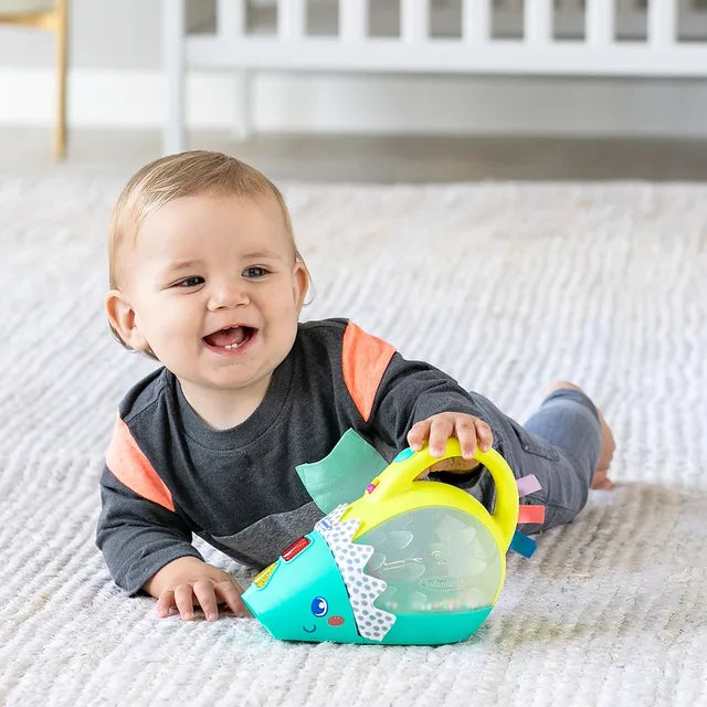 Watch your little one's face light up with joy as they push their hedgehog friend around the room, chasing the bouncing beads and enjoying the cheerful music. The Infantino Push & Pop Musical Light-Up Mini-Vac Hedgehog transforms playtime into an active, engaging learning experience that grows with your baby from sitting to crawling to walking.